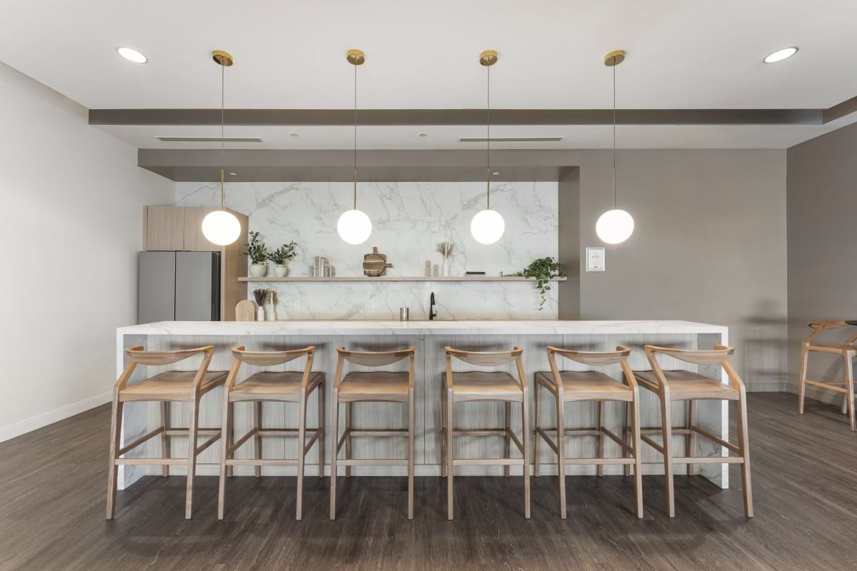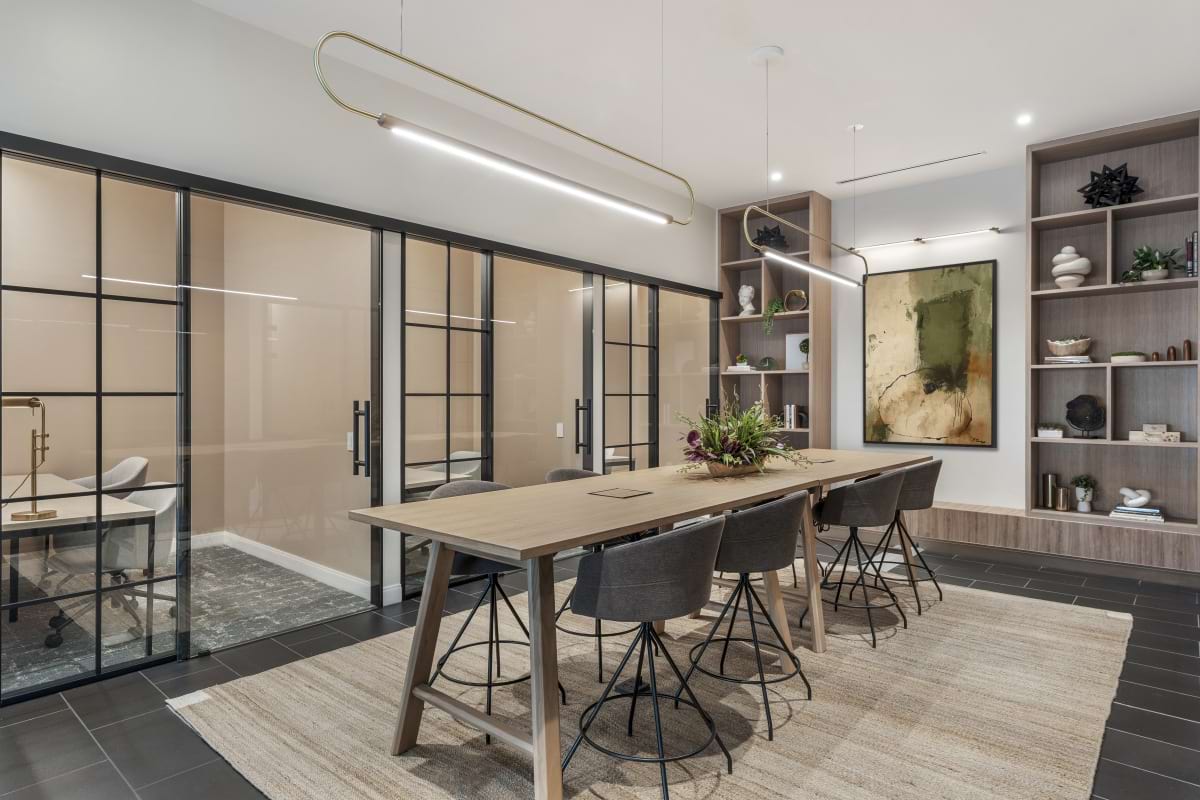 Your community equipped with the essentials. Enjoy an array of amenities, including a community lounge, catering kitchen, private conference room, resort style pool, and an impressive 5,000-square-foot fitness center and yoga studio.